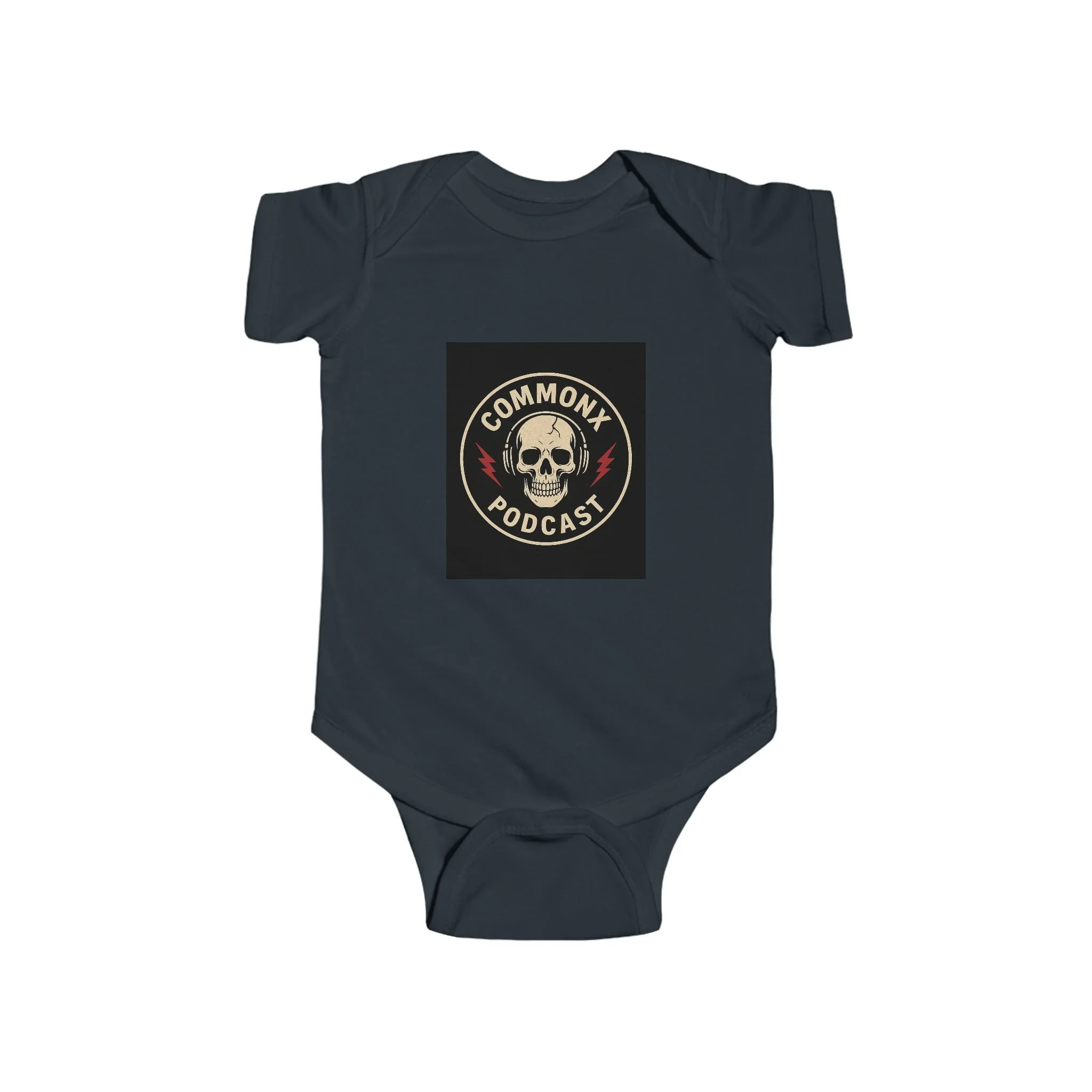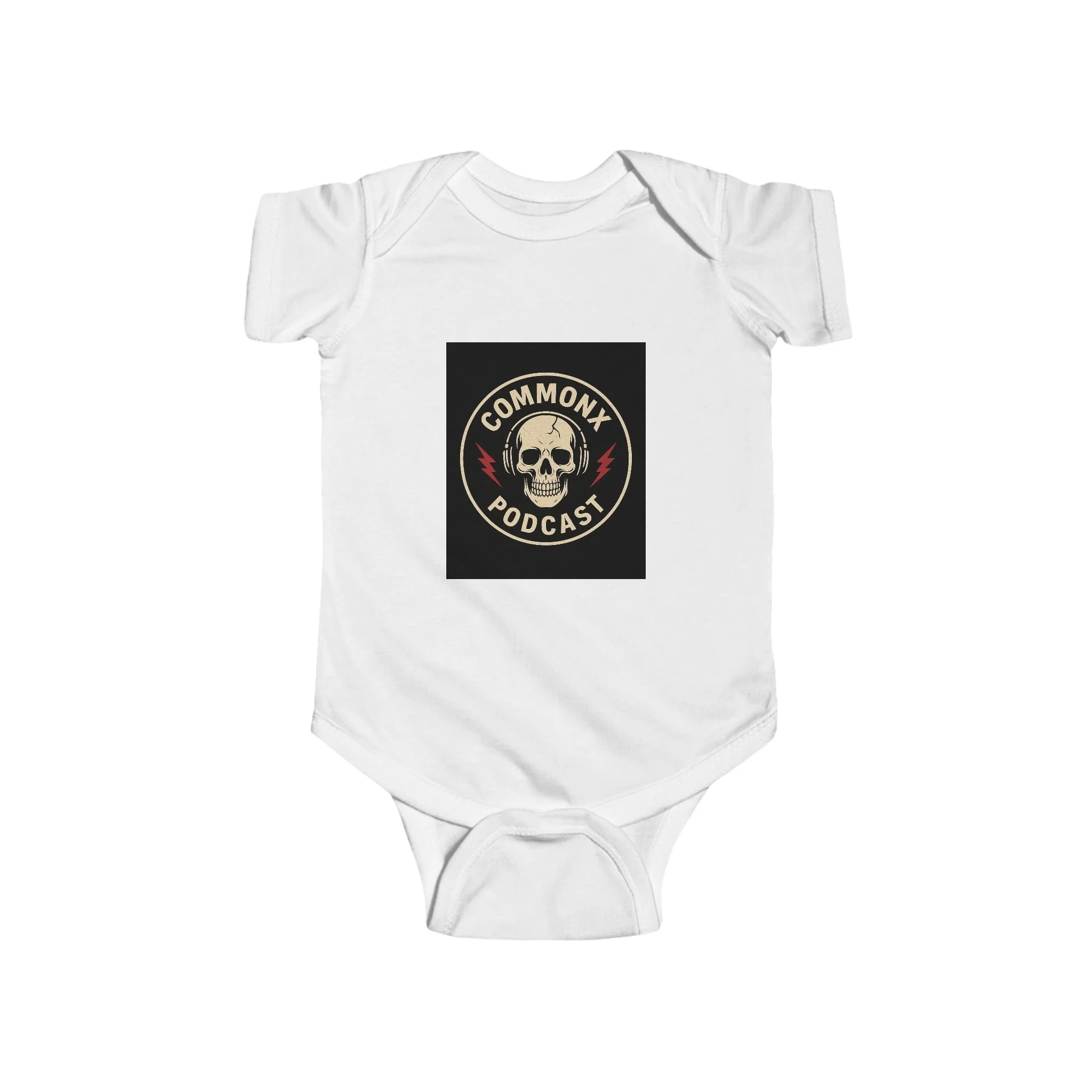 The Mini-X Onesie — "Commonly Podcast" Skull Logo Baby Onesie